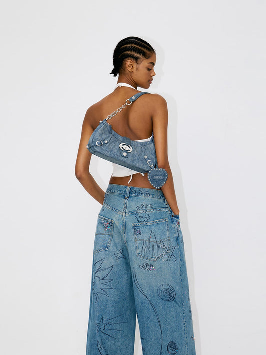Wonton Bag-Washed Denim Shoulder Bag